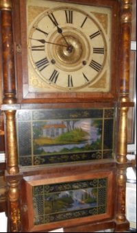 C'est une petite fabrique comme il en existe tant dans ces contrées de la Nouvelle Angleterre, elle a été présente sur le marché de 1838 à 1843. L'ensemble est en mauvais état, elle a du séjourner longtemps dans une remise, l'ébénisterie a beaucoup souffert, il y a des manques aux couvre joints qui protègent la vitre et les fixés sous verre, donc pour une bonne restauration tous les couvre joints ont été remplacés par des nouveaux, copiés au millimètre près et réalisés en noyer par le "spécialiste bois" de l'équipe de restauration.